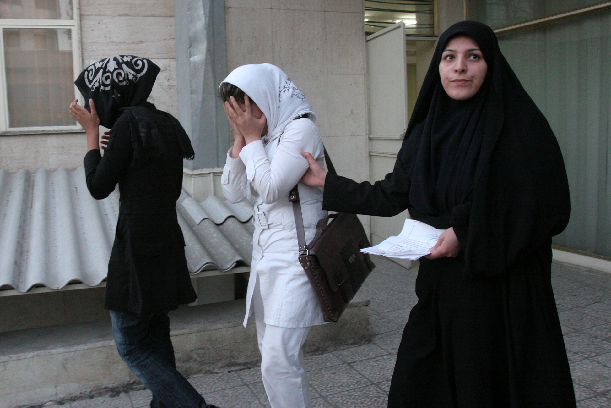 A female officer of the morality police, take women who are accused of not following Islamic dress code to the Vozara detention center April 2007. This detention center is one of the main detention centers for women who do not observe the mandatory hijab. On September 16th, 2022, Mahsa Amini, a 21-year-old Iranian girl, was killed in this same detention center.
