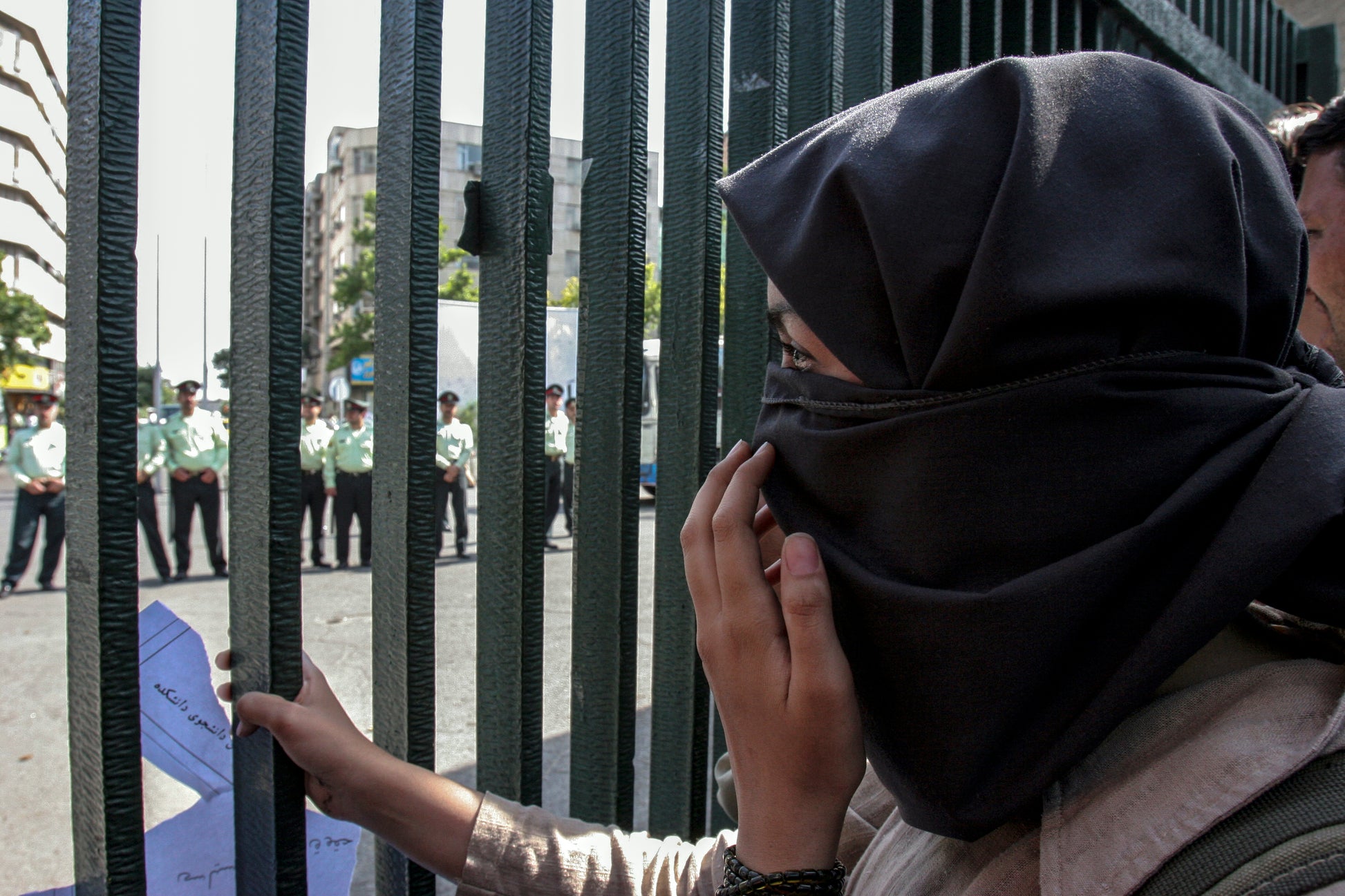 A student is watching the police forces outside Tehran University waiting to suppress the student demonstration. After an hour, violence erupted between the students and the volunteer paramilitary militia (Basij) June 27th, 2004.
