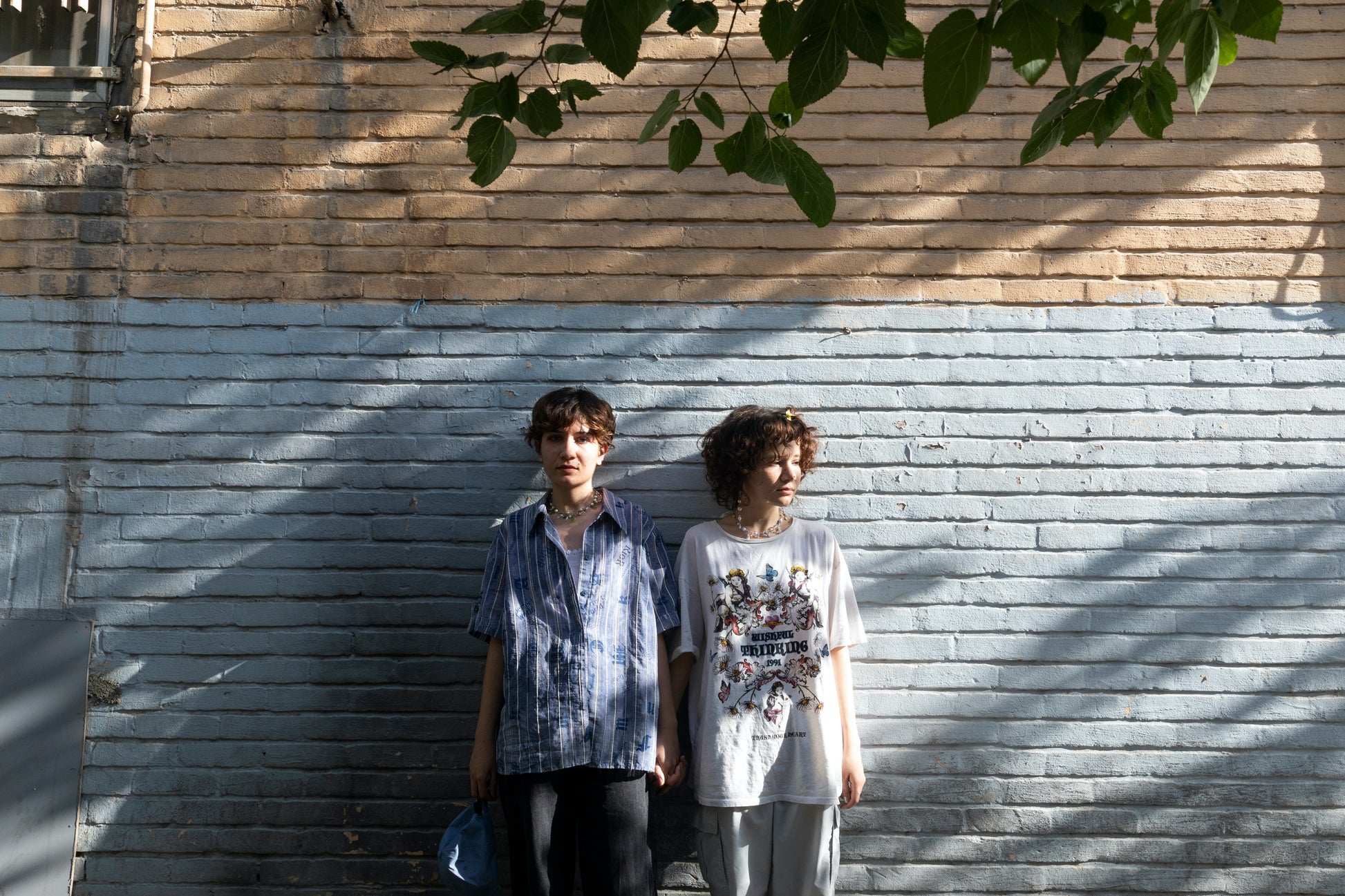 Masoumeh (right) and Fazeleh (left ) Khorasani are sisters and are 22 and 25 years old respectively. They were arrested on Enghelab street on October 22, 2022. They spent 40 days in Qarchak prison and subsequently released on bail. Masoumeh is a sculpture student in Tehran and Fazeleh has graduated.